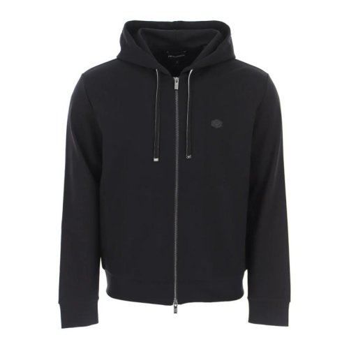 VERSACE/范思哲 男士黑色莫代尔混纺棉质希腊回纹边饰拉链开合长袖上衣外套连帽衫 AGU15010-AC00344-A008