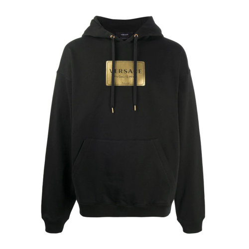 VERSACE/范思哲 男士黑色棉质经典字母徽标印花装饰长袖上衣卫衣连帽衫运动衫套头衫 A87450-A232781-A1008