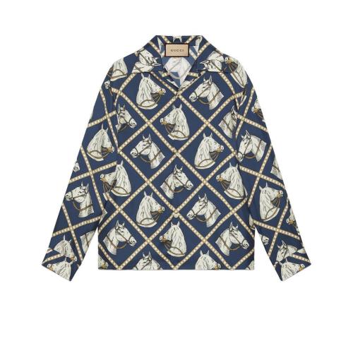 GUCCI古驰 22年秋冬 男士 马术印花真丝衬衫 721008 ZAK7G 4436
