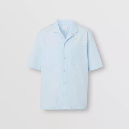 BURBERRY 22年秋冬 男士 刺绣徽标棉质短袖衬衫 80574771