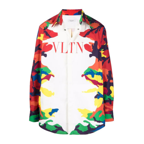 Valentino/华伦天奴 男士白色多色拼色涤纶经典字母徽标迷彩印花装饰长袖上衣衬衣衬衫 WV3CIA99-7JP-C40