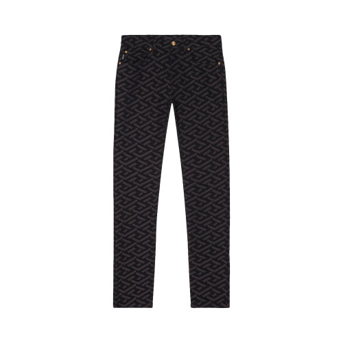 VERSACE/范思哲 男士黑色棉质混纺弹力牛仔布希腊签名印花牛仔裤长裤 A81832-1A02872-1D040