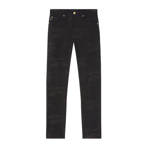 VERSACE/范思哲 男士黑色棉质混纺尼龙经典字母徽标提花装饰水洗牛仔裤长裤男裤 A81832-1A00615-2D180