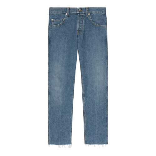 GUCCI/古驰 22年春夏新款 男士蓝色棉质混纺弹力丹宁面料毛边裤脚牛仔裤681284XDBP74011