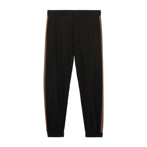 BURBERRY 博柏利 巴宝莉 男士 服装 21春夏 黑色黄色裤线装饰休闲棉质运动裤 男士运动裤
