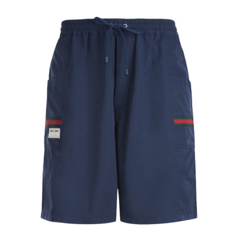 GUCCI 古驰 男士 服装 藏蓝色经典条纹标抽绳宽松休闲短裤 男士短裤