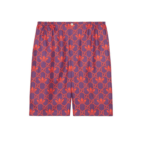 GUCCI/古驰 22年秋冬新款 adidas联名系列 男士紫色/红色真丝斜纹布老花图案短裤691440ZAIXY6220