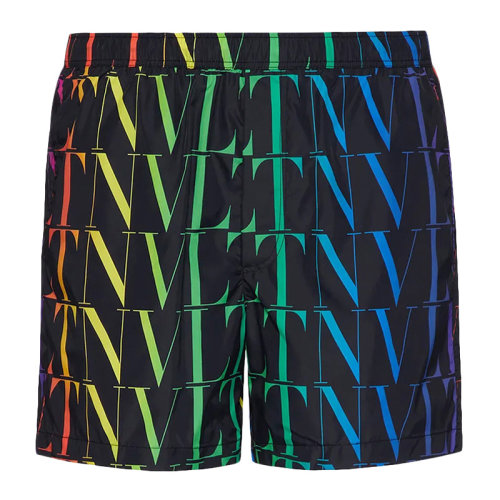 Valentino/华伦天奴 男士黑色多色尼龙经典彩色字母徽标印花泳衣泳裤短裤男裤 VV3UH028-6G0-20K