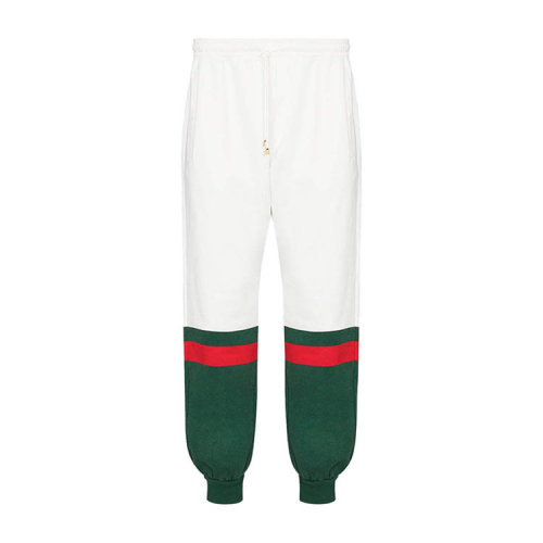 GUCCI/古驰 古琦男装 条纹装饰 男士拼色棉质抽绳休闲运动裤 625403 XJCSU 9146