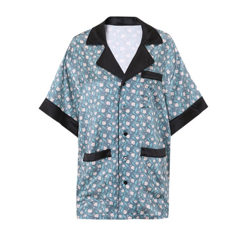 bifubyxingchen/彼伏男士绿色真丝印花家居短袖男睡衣/家居服