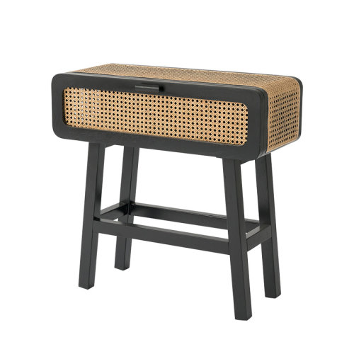 GeleiStory/GeleiStory 卧室藤编实木床头柜餐边桌储物柜民宿日式床边桌 置物架