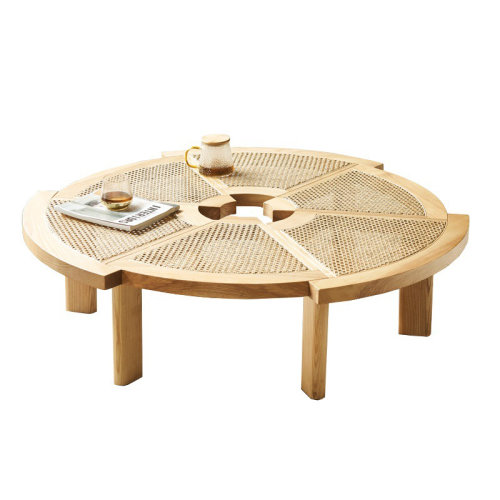 GeleiStory/GeleiStory 实木藤编圆形茶几创意个性日式藤面小茶桌民宿藤编家具茶几