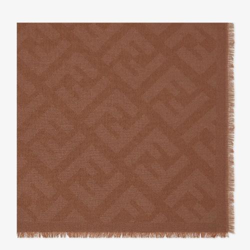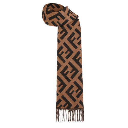 FENDI/芬迪新款 女士棕色FF经典图案羊绒围巾FXT260A8RSF0QE1