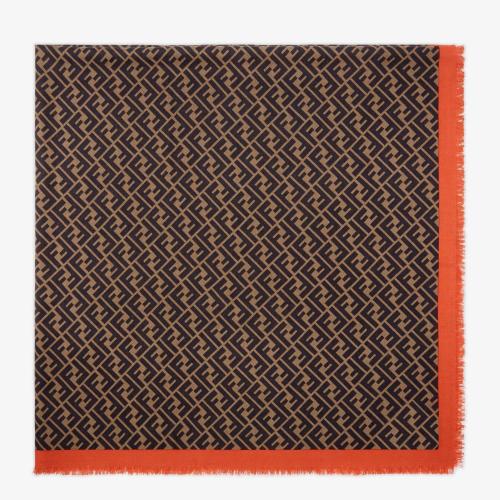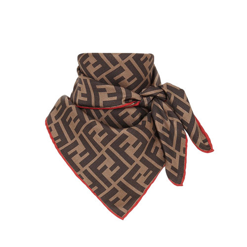 FENDI/芬迪 新款女士FF提花棕色真丝围巾 FXT103A6DOF0TZ5