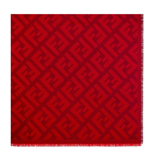 FENDI/芬迪 女士红色织羊毛和羊绒混纺大号方形FF图案披肩FXT069A669F0QC9
