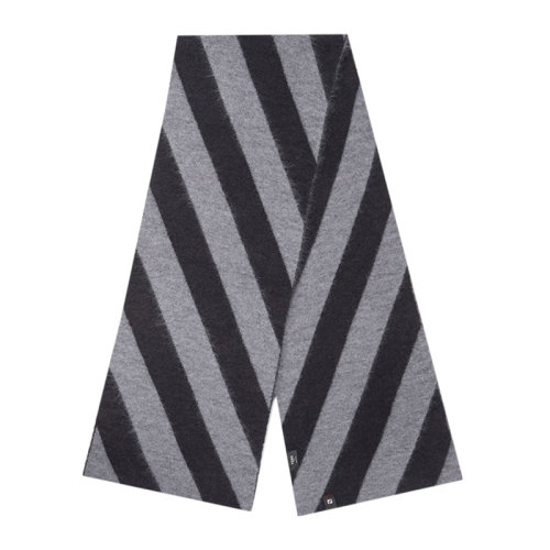 FENDI/芬迪 男士黑灰拼色羊毛马海毛混纺真丝斜条纹装饰披肩围脖围巾 FXS124-AH7H-F0D9B