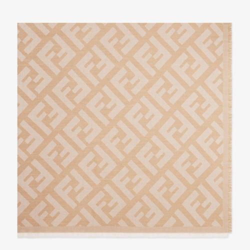 FENDI芬迪 22年秋冬 女士 围巾 米黄色羊毛羊绒混纺披肩 FXT069A669F0QB9