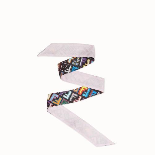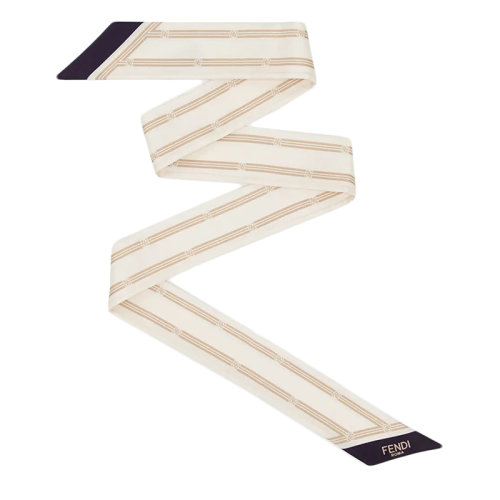 FENDI/芬迪 女士白色色真丝条纹和FF Karligraphy图案丝巾发带FXT011AHRMF0QG1