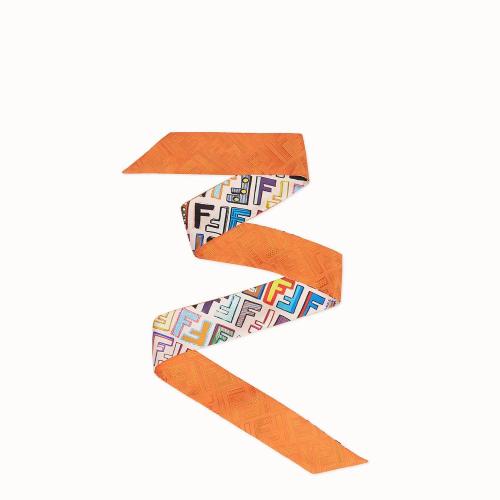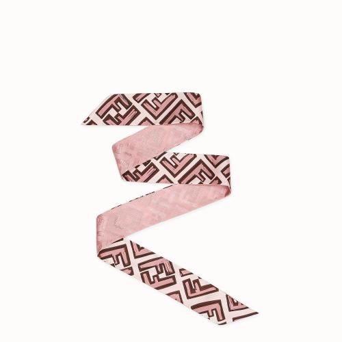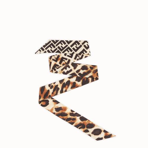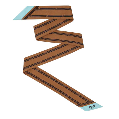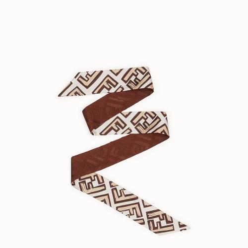 FENDI/芬迪 女士棕色真丝条纹和FF Karligraphy图案丝巾发带FXT011AHRMF1ENR
