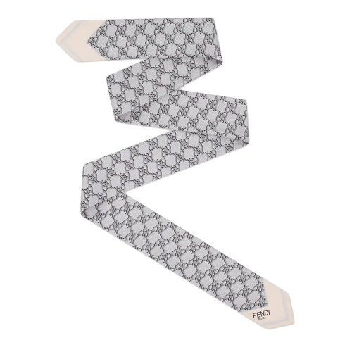 FENDI/芬迪 女士灰色真丝FF Karligraphy图案丝巾发带FXT011AHRQF0QZ0