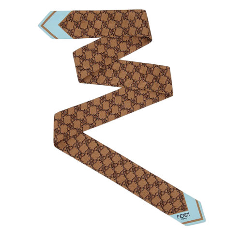 FENDI/芬迪 女士棕色真丝FF Karligraphy图案丝巾发带FXT011AHRQF0QU5