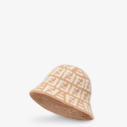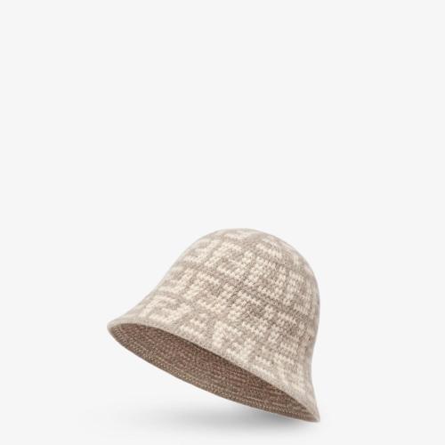 FENDI芬迪 22年秋冬 女士 帽子 米色FF提花羊绒钟形帽 FXQ922ALSQF0QB8