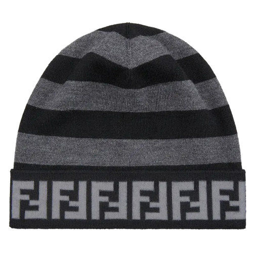 FENDI/芬迪 男士黑灰色条纹羊毛帽FXQ056AH84F13C0