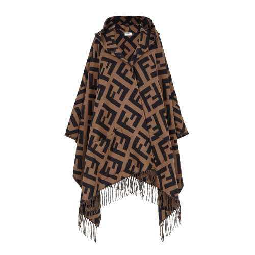 FENDI/芬迪 女士FF提花棕色羊绒连帽斗篷 FXX711AEOSF0QE1