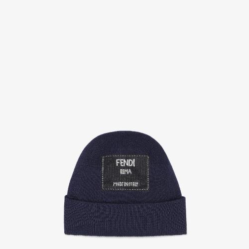 FENDI芬迪 22年春夏 男士 帽子 蓝色羊绒帽子 FXQ056AIKIF0QA2