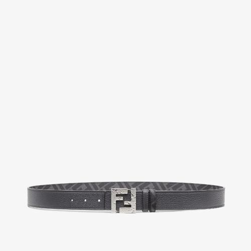 FENDI/芬迪 经典款 男士黑色灰色小牛皮FF雕花图案皮带环双面腰带宽3.5厘米7C0435AB59F0TUH