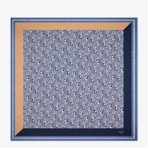 FENDI芬迪 22年秋冬 女士 围巾 蓝色桑蚕丝围巾 FXT091AIXAF0V6W