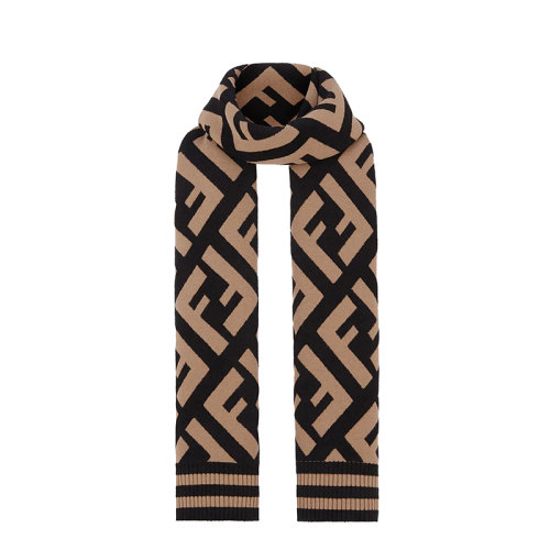 FENDI/芬迪 经典款 女士黑色和棕色羊毛混纺面料FF图案围巾FXT251A2OJF0QB8