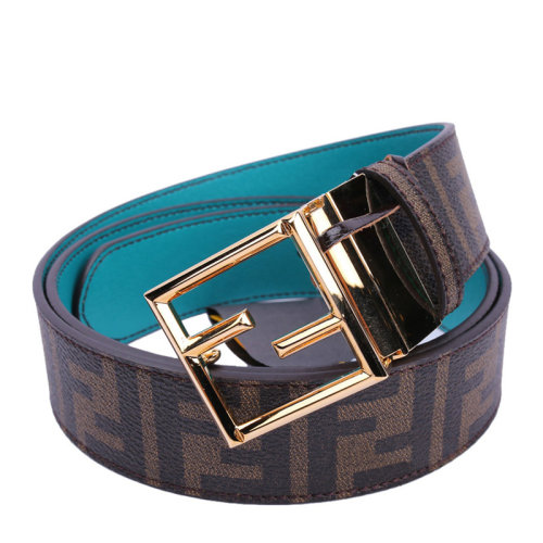 FENDI/芬迪 男女同款 中性棕色/蓝色双色牛皮印花Logo皮带休闲双F标识板扣腰带 8C0476-GRP-F0P3N