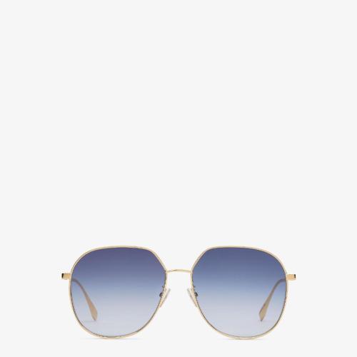 FENDI/芬迪 女士棕色镜片和金色金属镜架条纹五边形太阳镜FOL009V1TF1FVA