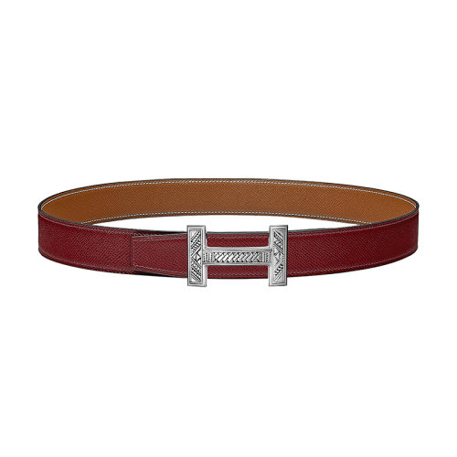 HERMES/爱马仕 H Quizz系列 红色/金色荔枝纹小牛皮 男士双面银扣皮带32毫米H073941UT00/H075394CAAC090