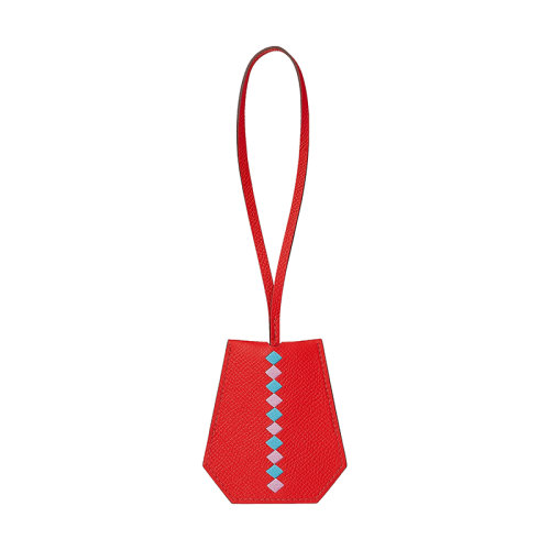 HERMES/爱马仕 21早秋新款 女士红色Epsom小牛皮小编织钥匙铃包配饰H076265CJAD