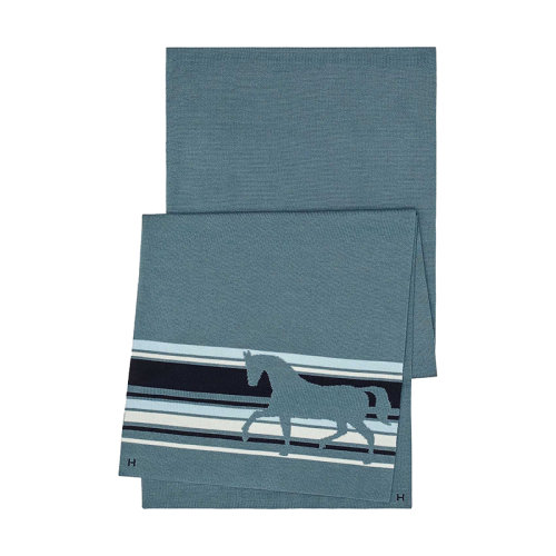 HERMES/爱马仕 男士风暴/海军/天空色火热的马条纹图案羊绒真丝围巾H733767T02