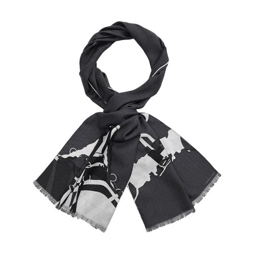 HERMES/爱马仕 22年早春新款 男士黑色/灰色羊绒和真丝混纺印花围巾H693843T03