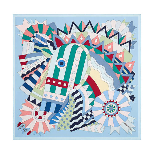 HERMES/爱马仕 90号广场派对马 女士天蓝色/绿色/粉红色真丝斜纹围巾H003748S05