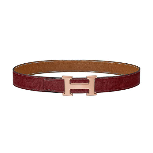 HERMES/爱马仕 5382 红H /金小牛皮 镀玫瑰金金属皮带扣 女士双面皮带 32毫米H064544CDZ2/H075394CAAC090