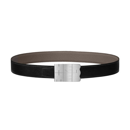 HERMES/爱马仕新款 Typo系列 男士黑色/锡器灰荔枝纹皮革银扣双面腰带32毫米H081751CB86/H073967CAAC075