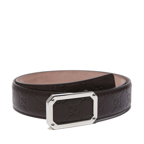GUCCI/古驰 男士深棕色牛皮经典双G字母徽标压花时尚方形板扣装饰皮带腰带 403941-CWC0N-2140