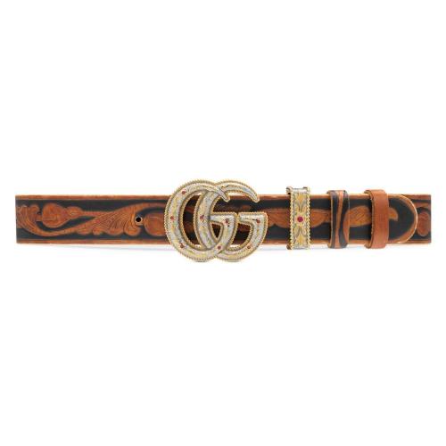 GUCCI古驰 22年秋冬 男士 GG Marmont系列水晶搭扣腰带 698603 D7G5X 7678