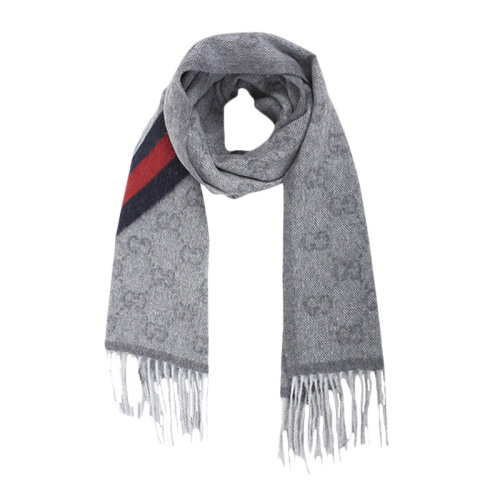 GUCCI/古驰 男士黑灰色经典GG图案印花条纹羊毛围巾围脖 497915-4G200-1074