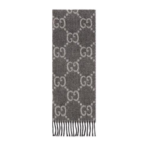 GUCCI古驰 22年秋冬 男士 GG提花流苏针织围巾 676610 4G200 1061