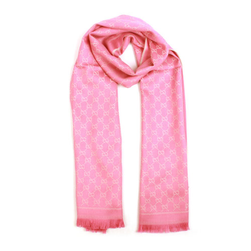 GUCCI/古驰 女士粉色羊毛流苏毛边双G图案舒适保暖披肩围巾围脖 411115-3G 00-9272
