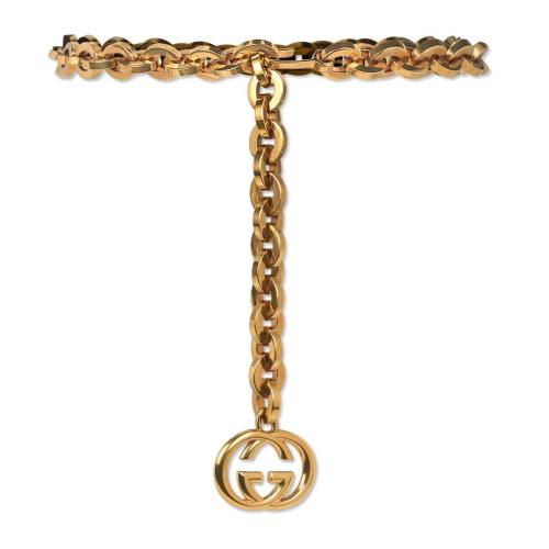 GUCCI古驰 22年秋冬 女士 互扣式双G吊坠链式腰带 649931 J160T 0863
