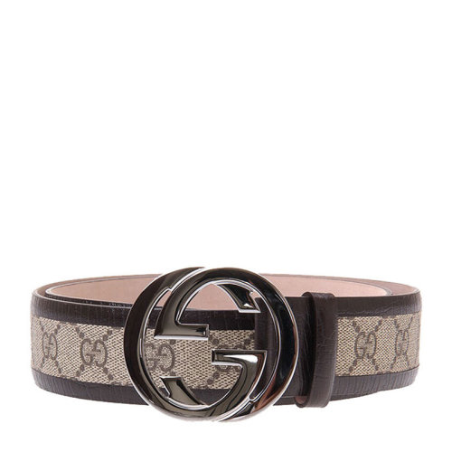 GUCCI/古驰 男士棕色时尚经典双G压花板扣式腰带皮带 142930-KGD1R-9643
