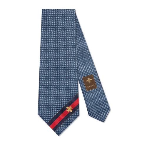 GUCCI古驰 22年秋冬 男士 蜜蜂织带真丝领带 456510 4E002 4768