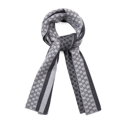 GUCCI/古驰 厚款男士羊毛 围巾/披肩 双Glogo灰色羊毛围巾 30×200cm
